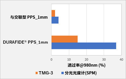 图 直链型PPS与交联型PPS的激光透过率比较(GF增强)