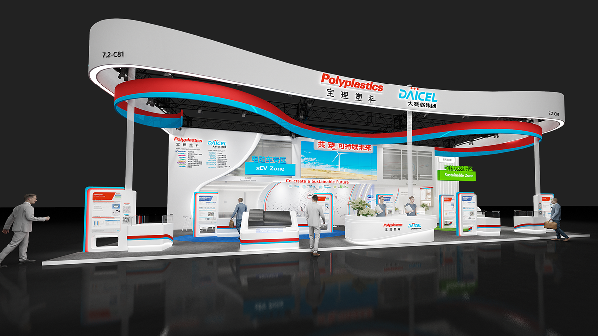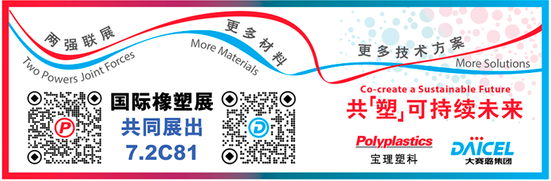 继上届深圳国际橡塑展成功举办后,大赛璐和宝理塑料将再次强强联手。以两家公司的标志性颜色为轴线– 长带飘扬的活力红色和电蓝色,流畅地融合在一起。它喻意着我们的协同效应及“共[塑]可持续未来” 的发展方向。