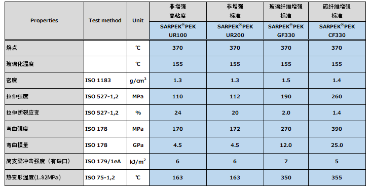 物性一览表(PEK品级一览表)